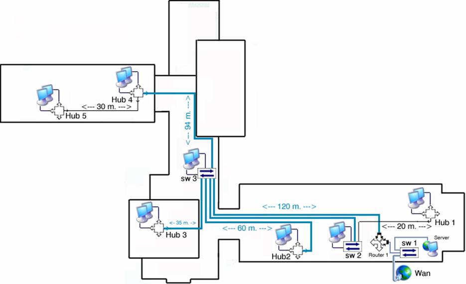 Išdėstyti kompiuterinius mazgus schemoje (2.1.2.).