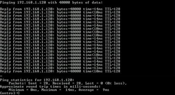 klientas tolimiausiose taškuose. 192.168.1.2 ir 192.168.1.120